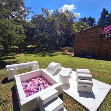 Perfect for neutral themes and luxury setups, our white soft play pairs beautifully with balloon décor and event styling.